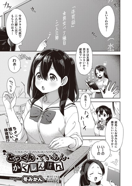 体育祭で2人3脚に選ばれた友瀬さんと蔵島くん。練習をやってみるが息が合わず上手くいかないので、作戦会議。一心同体になる事が大切だと雑誌に書いてあるウケウリ「男女が心を一つにするにはえっちをするのが一番」を実行する事に!?体育祭当日まで毎日セックスいうなの特訓を繰り返し、無事(?)に優勝しました♪